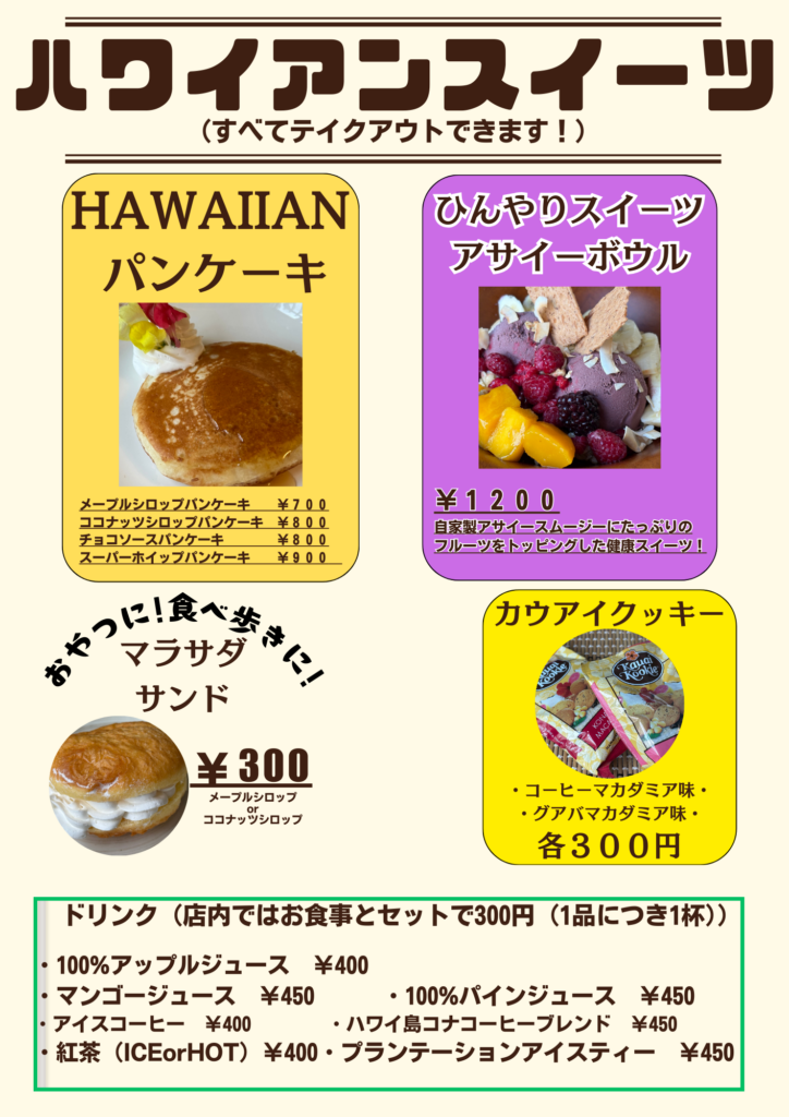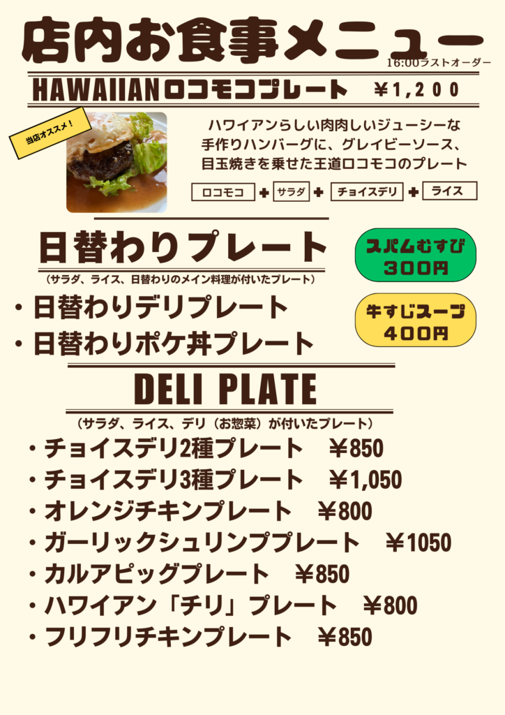 店内では ロコモコをはじめとしたプレートランチを お楽しみいただけます!